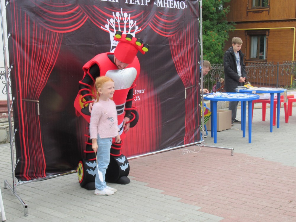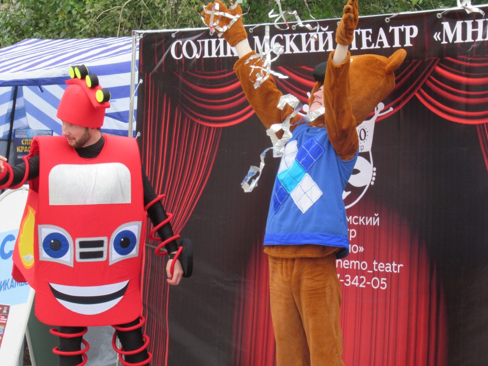 Разные площадки: фото на фоне цветочков было платное — 50 рублей))) А вот ребята из мнемотеатра и не только они со всеми фотографировались бесплатно! И доставили массу радости детям и их родителям. Вообще много было арт-объектов, где можно было сделать интересные фото на память.