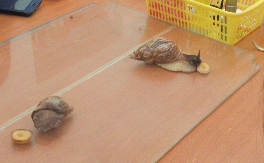Эксперимент по влиянию внешних факторов на улиток ахатин и кубинских тараканов научил ребят выдвигать гипотезы и делать выводы. А также позволил узнать много новой интересной информации. Улиткам и тараканам предлагали «попробовать» банан, воду, свет фонарика и нашатырку. Банан и вода улиткам и тараканам понравились, свет заинтересовал только улиток, хоть они и сумеречные «животные». А вот тараканам свет не пришелся по вкусу, как и запах нашатырки.