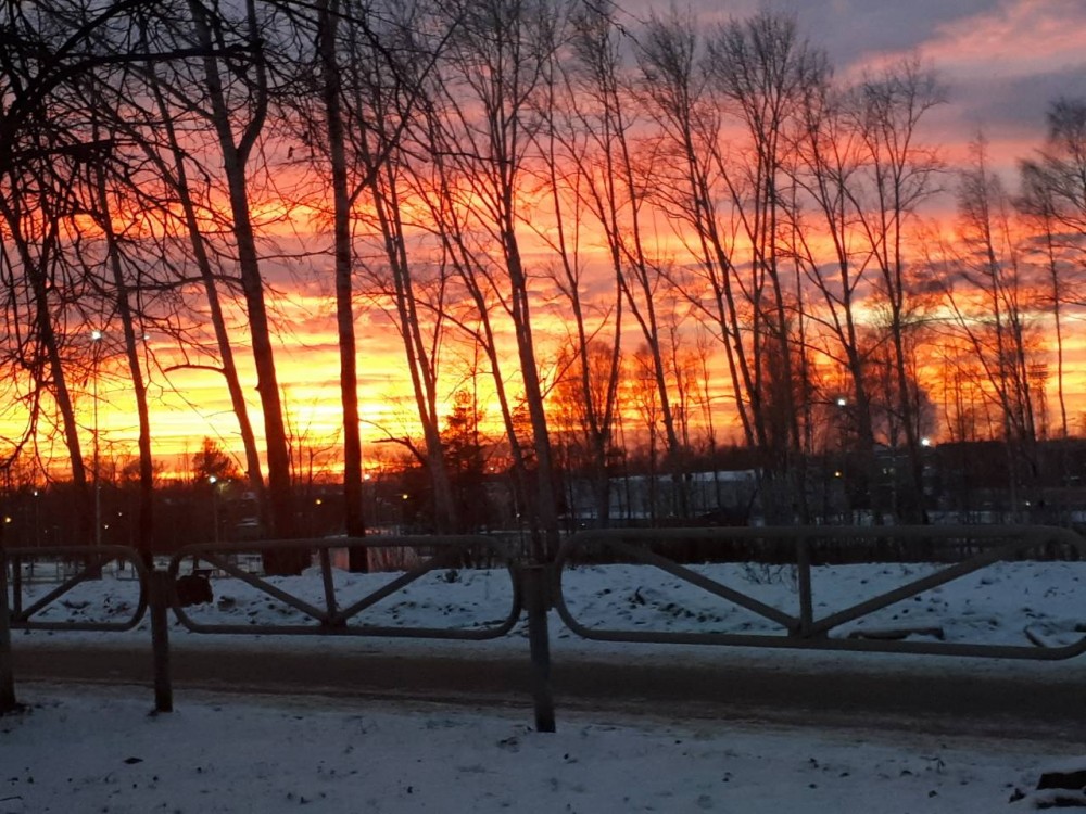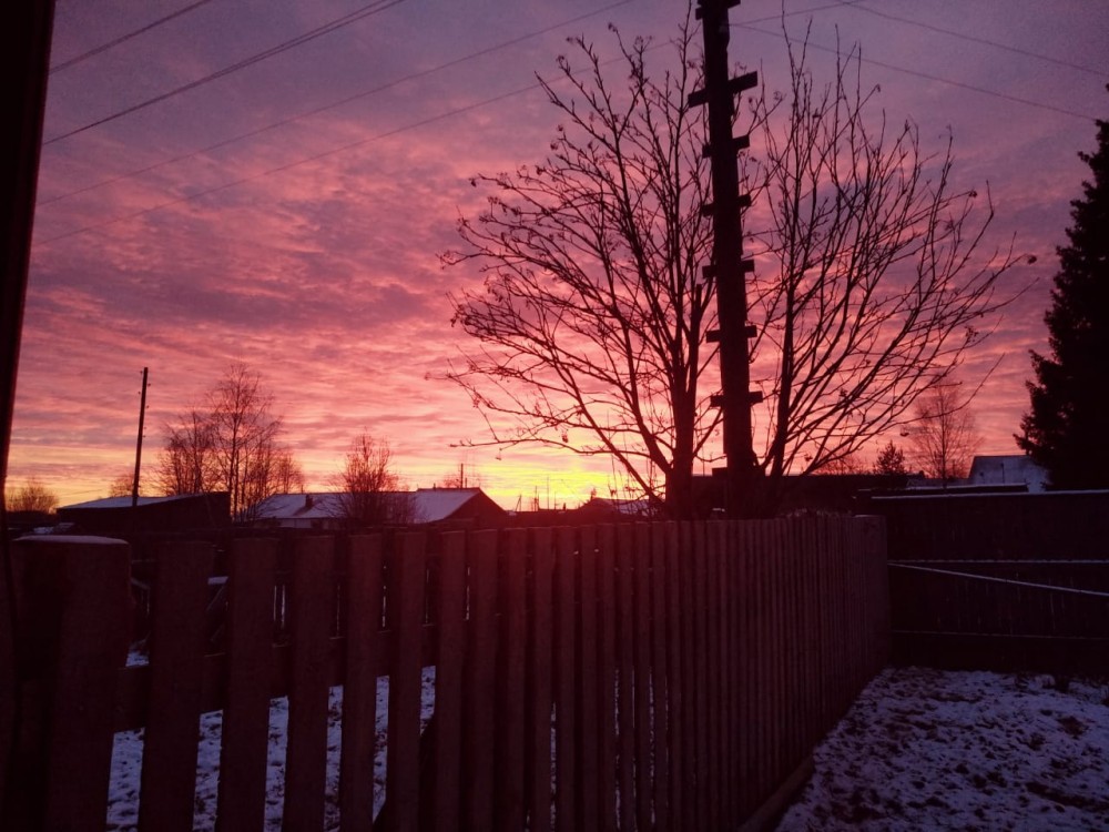 Уже второй вечер природа нас радует красивыми закатами. Невероятного насыщенного цвета. Ну должны же быть какие-то плюсы от этих морозов))