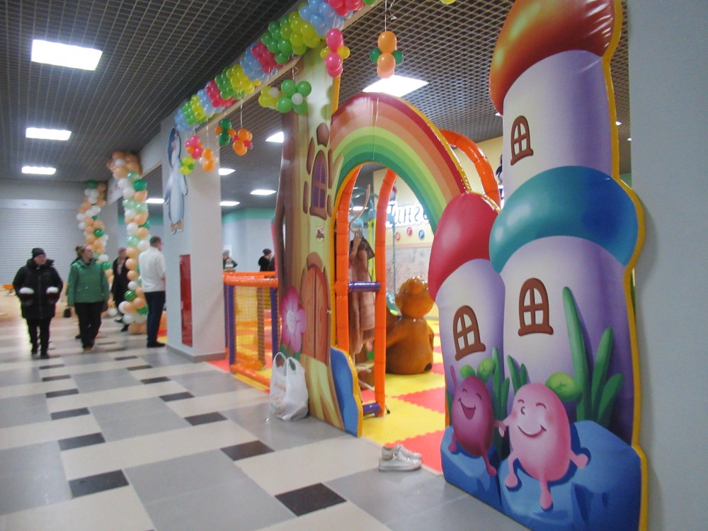 Работают эскалаторы. На втором этаже есть комната развлечений для детей — Пингвиненок.