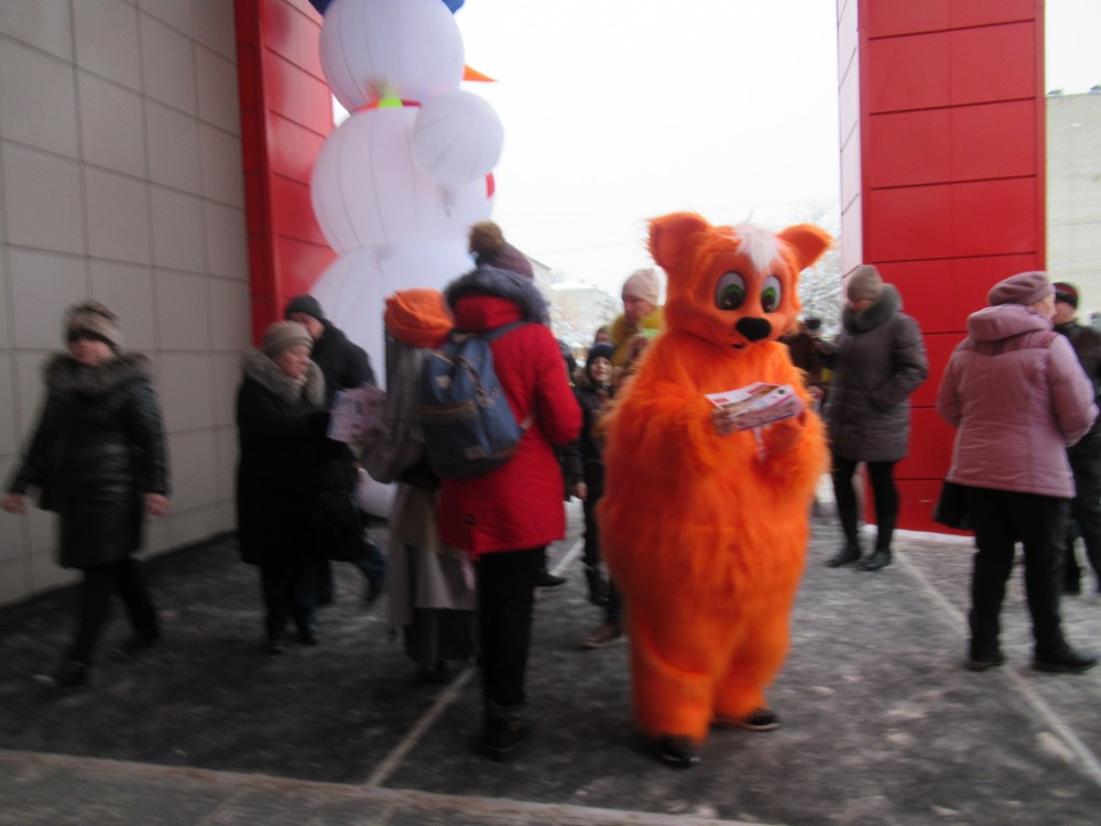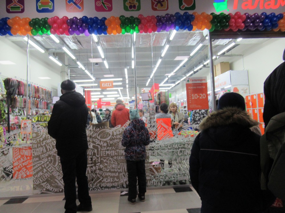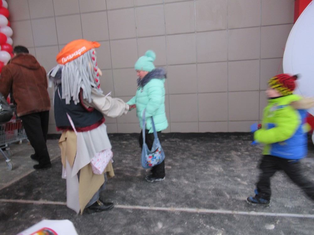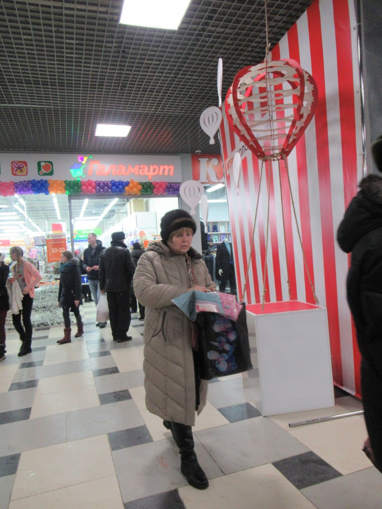 Открытие было грандиозным: на улице гостей встречали сказочные герои. В ТЦ на первом этаже трансляцию событий вели радийщики, на втором был концерт. Народу довольно много. В магазинах-якорях — очереди. Остальные магазинчики-бутики пустовали