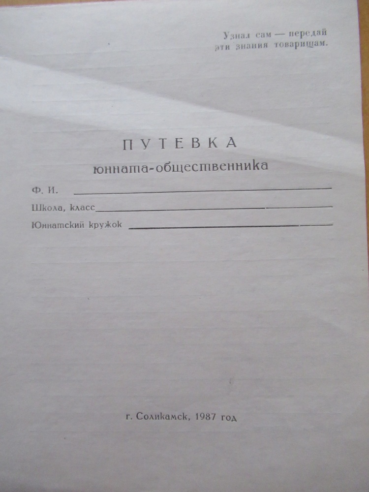 Интересен бланк — Путевка юнната-общественника, 1987 года. Просто так юннатом нельзя было называться, следовало выполнить некие задания сначала! А вы в своем советском детстве участвовали в «зеленом»движении?