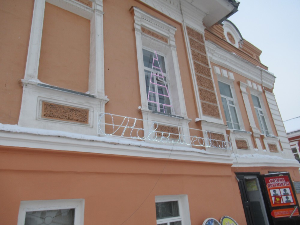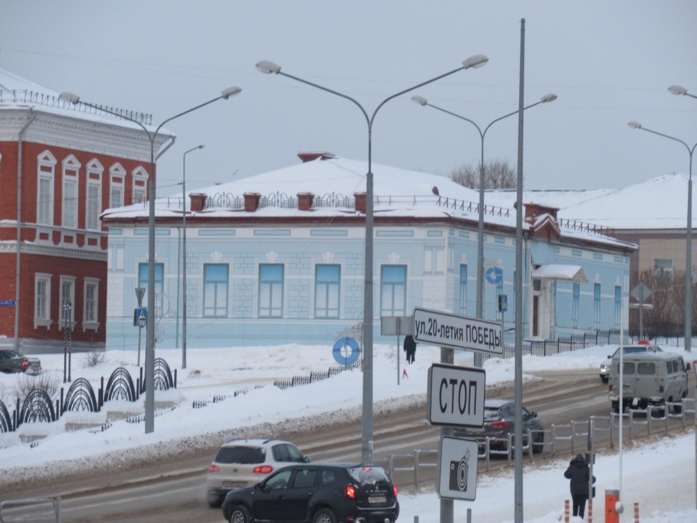 На ее фоне здание уездного казначейства, затянутое изрядно выцветшим материалом, увы, проигрывает(