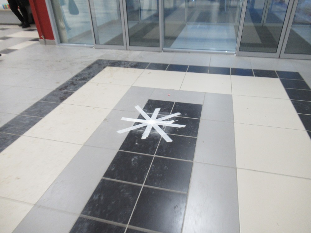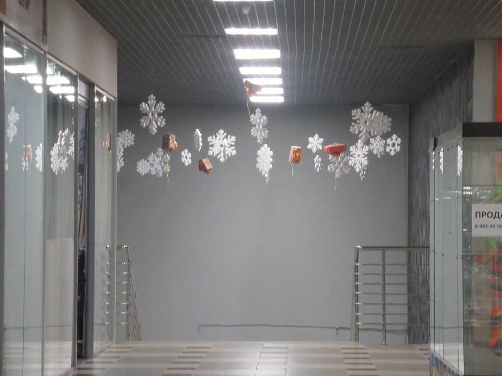 В только открытом ТРЦ по ул Молодежной отпадывает плитка( Да не одна… Выход найден и это решение смотрится так «снежинисто»!