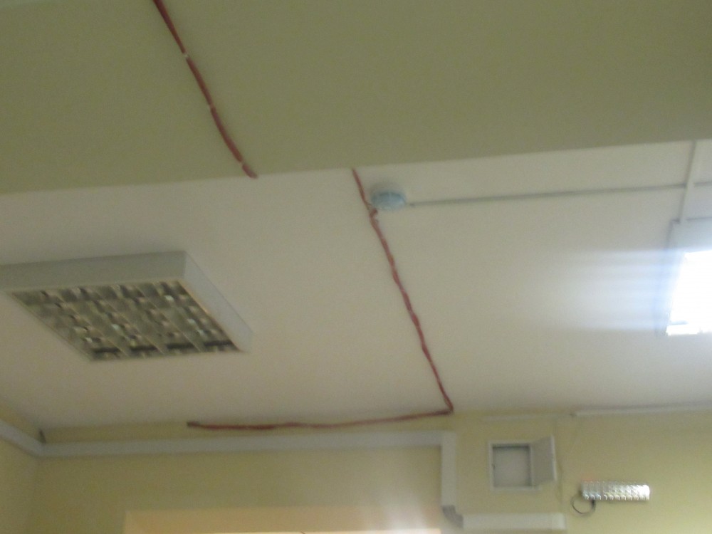 По потолку протянуто много новых проводов. Только почему-то без кабель-каналов. Может так красивее — не так однообразно смотрится потолок.
