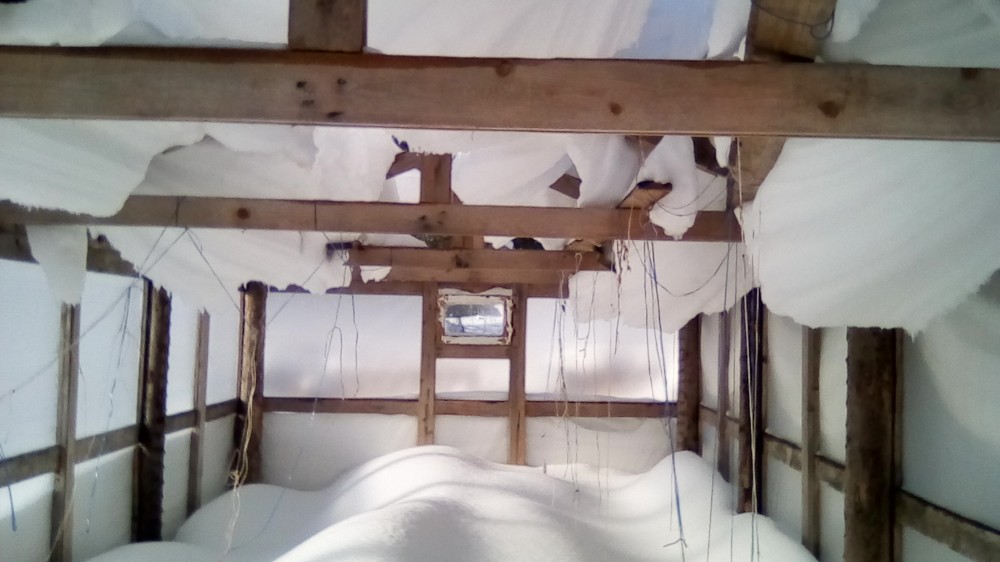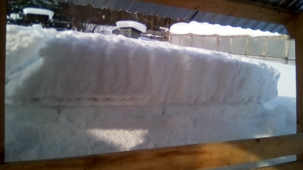 У двух моих знакомых от количества выпавшего снега сломались теплицы: просто сложились и восстановлению не подлежат. Моему саду повезло: 9 марта очистили снег и с теплицы, и с сарая, и с бытовки, и с беседки. Хорошо, что сад от будки сторожа близко. Но пока протаптывали дорогу, я трижды проваливалась по грудь) Найдите на фото забор — его высота 1 м 20 см.