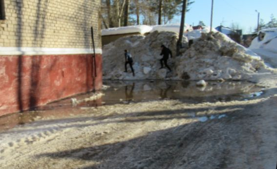 Снежная соликамская зима сменилась весной: лужи, океаны луж под ногами...