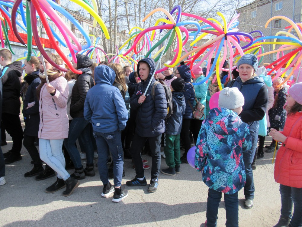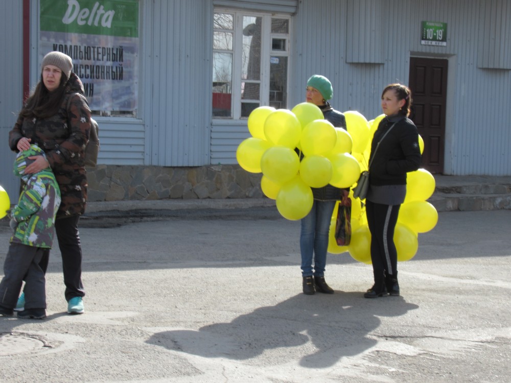 В этом году по всей стране рекомендуют не засорять окружающую атмосферу и природу и отказаться от запуска шариков с гелием, поэтому многие пришли с шарами на палочках. Были интересные варианты.