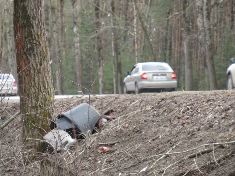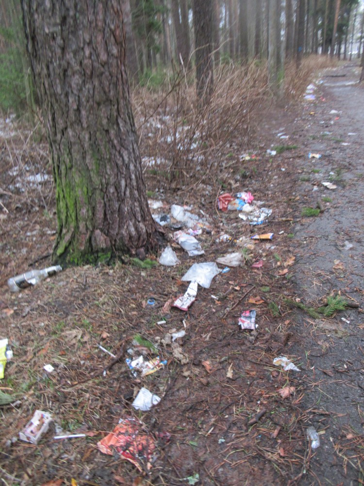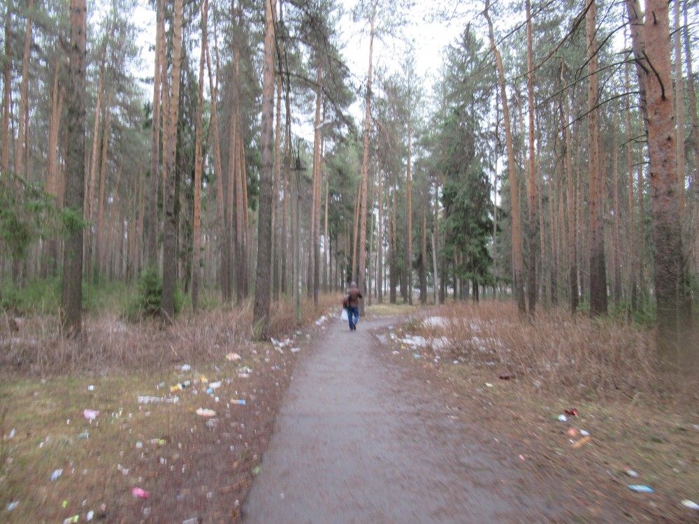 Еще такая ситуация вдоль Всеобуча — по лесу валяется мусор, которые водители выкидывают из окон! Вчера один остановился на обочине — переговорить со знакомым, и внезапно обнаружил, что не снял бахилы (не знаю уж, откуда он ехал) — тут же снял и выкинул на обочину. Урод, других слов для его обозначения у меня нет! Кроме бахил там много чего другого валяется...