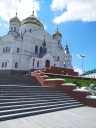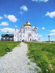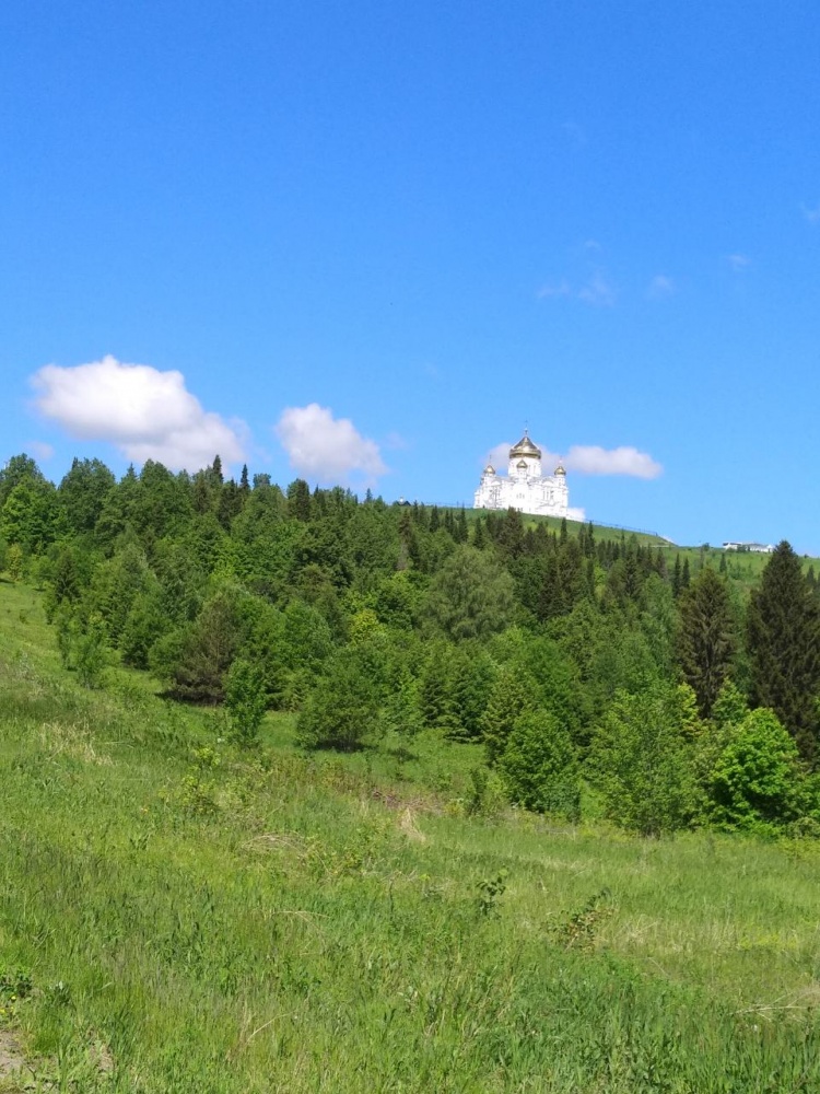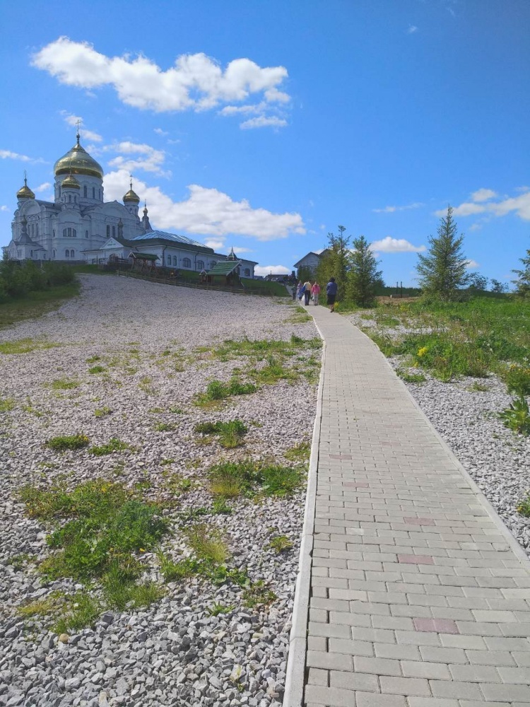 В Белогорский Свято-Николаевский монастырь я ездила уже два раза и тут выдалась возможность побывать там вновь. Добраться до Белогорского монастыря можно по трассе Пермь – Екатеринбург. У села Ергач поворачиваем по указателю на Белую гору. Доезжаем до поселка Калинино, в котором у пруда стоит указатель на Белую гору. Там мы тоже остановились осмотреться. Далее дорога приведет Вас прямо к монастырю. Еще на подъезде его вид на возвышенности — завораживает. Интересно, что монастырь часто еще называют Уральским Афоном.