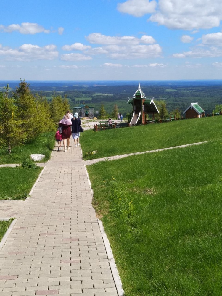 На очень большой территории монастырского комплекса есть кафе, трапезная, детская площадка, несколько купелей, пруд, колокола, обилие лавочек. С горы открывается просто потрясающий вид. Говорят, что обязательно это место надо посетить зимой. Под снежным одеялом эти места выглядят иначе. Место живописное. За 15 лет оно очень сильно поменялось. И продолжается строение различных объектов. Планы у них грандиозные. Поэтому если вы бывали там лет десять назад — советую съездить еще.