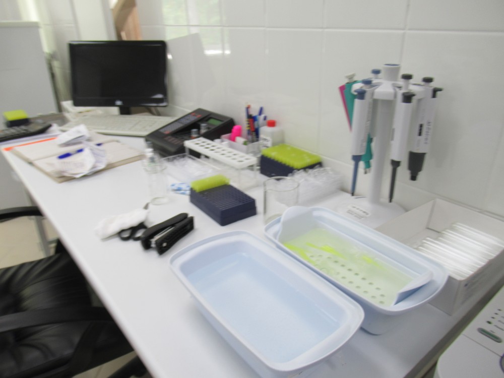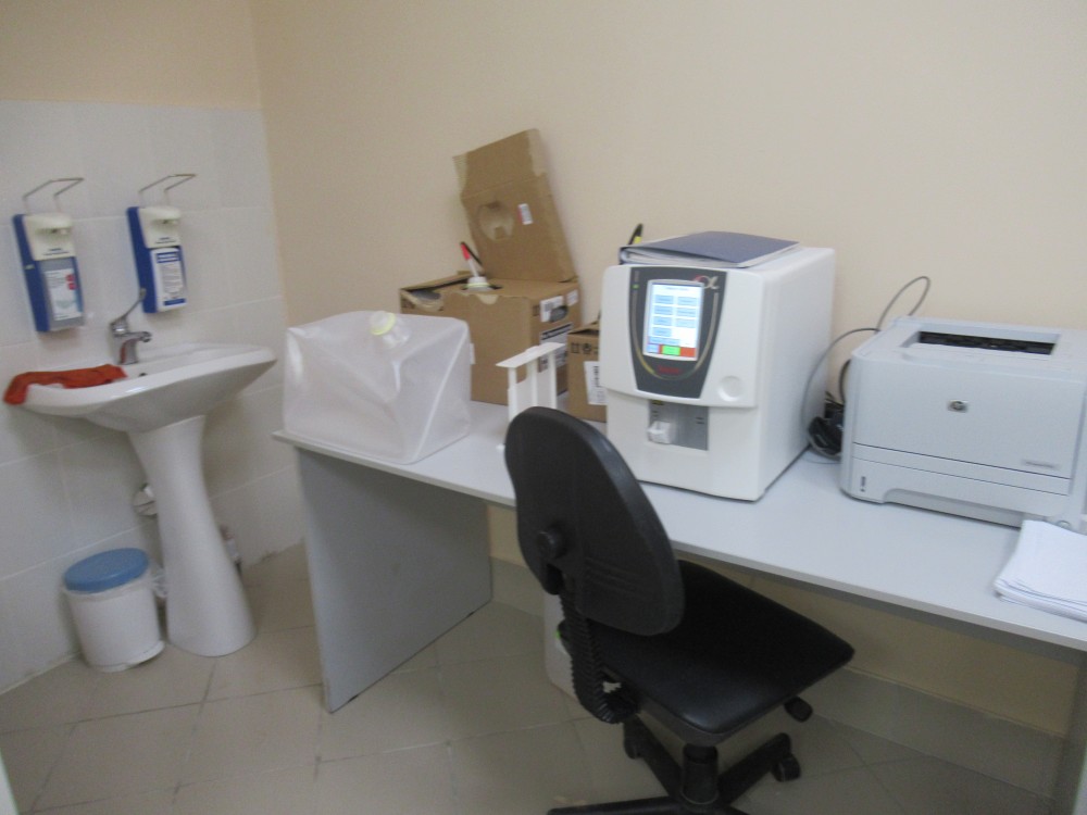 В лаборатории несколько «отделений»: здесь происходит забор анализов мочи и их обработка.