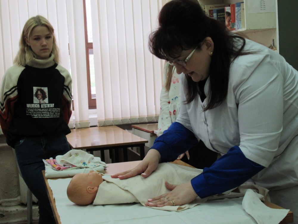 Обучают будущих медиков замечательные специалисты — хорошо знающие свое дело. Научат и младенца запеленать и провести антропометрические измерения, и уколы поставить...