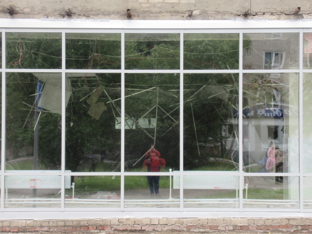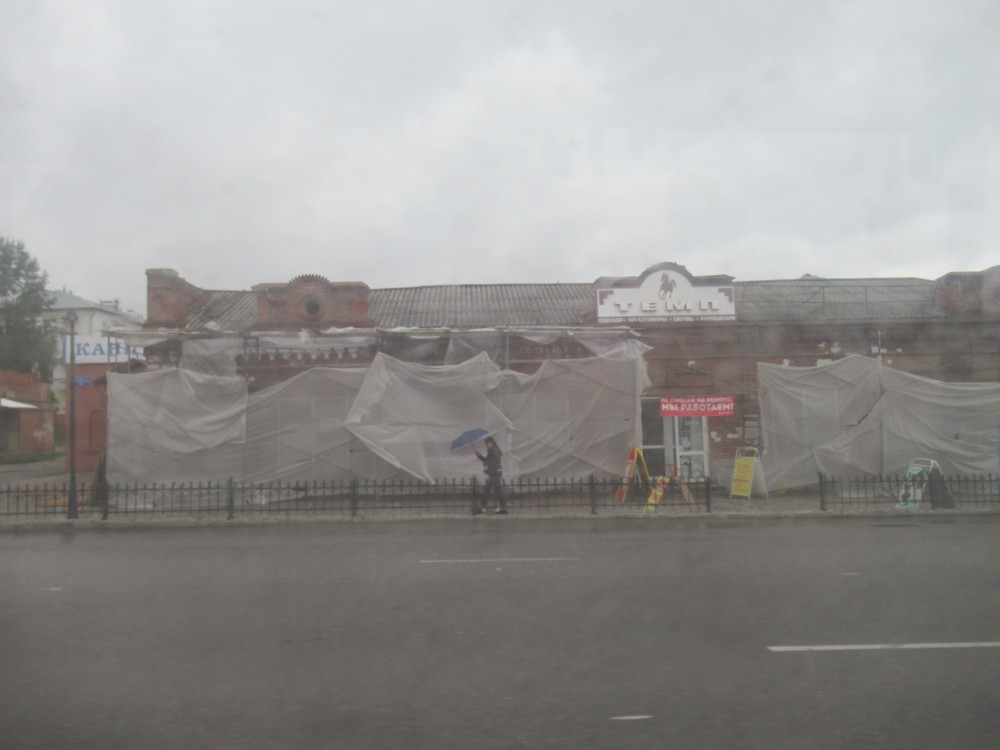 На ул. Революции тоже ремонт магазина «ТЕМП», у строителей не хватило средств на новую «защиту от стройки», натянули то, что было: