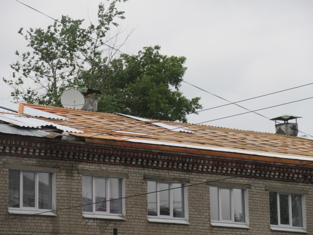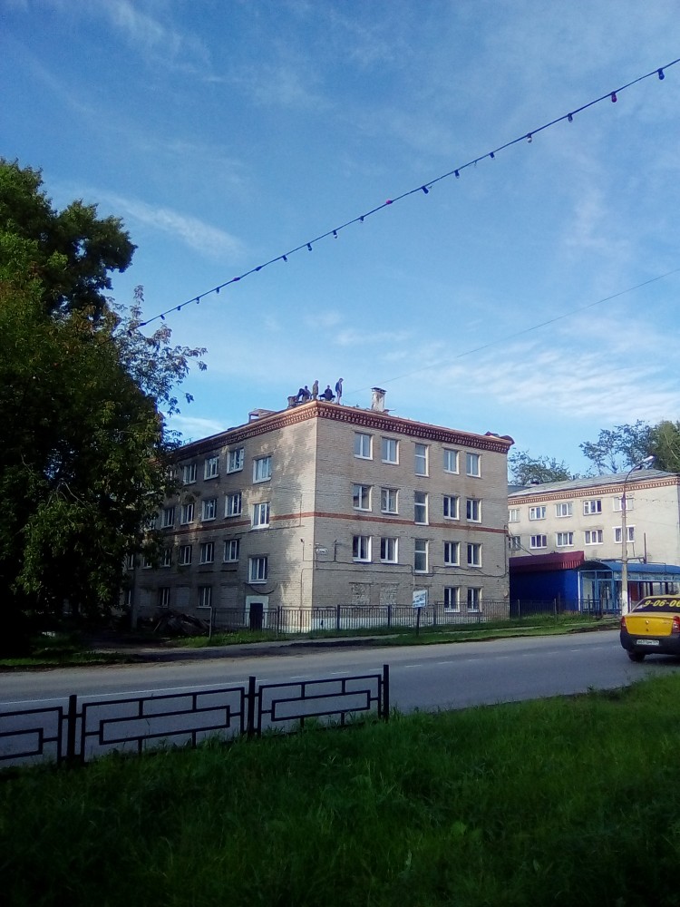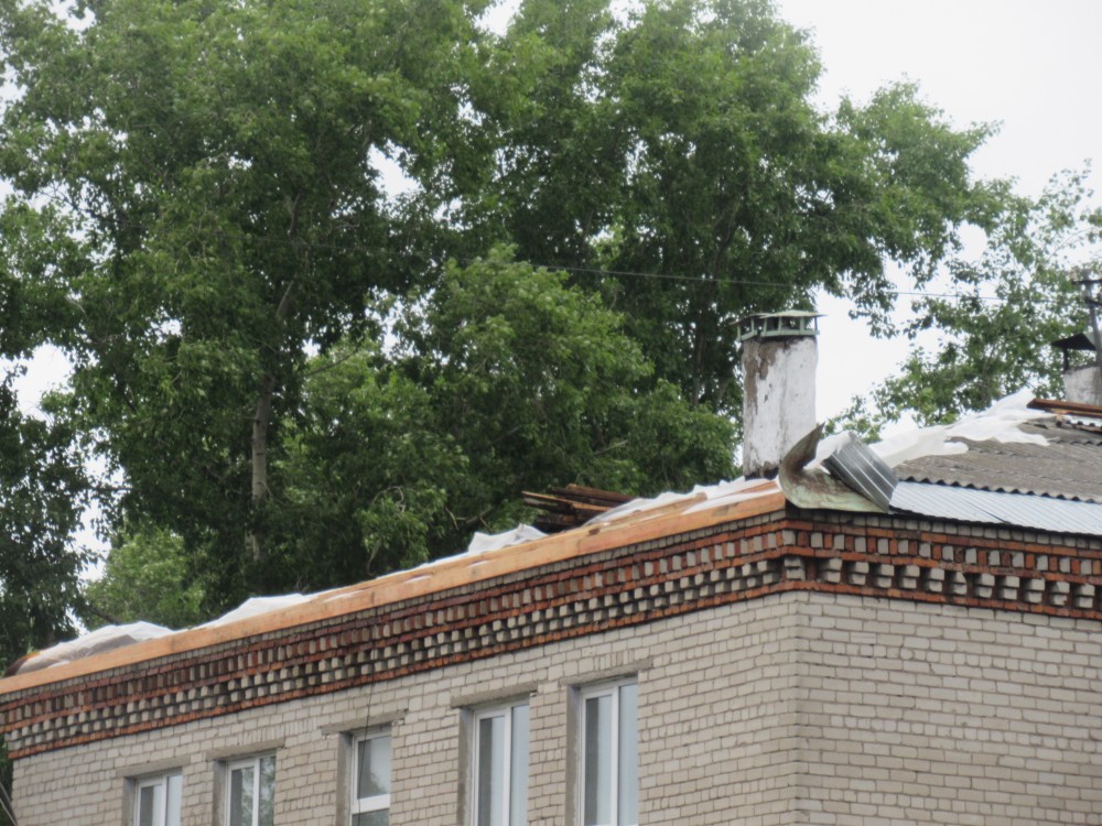ул. Северная: в самый дождь идет ремонт крыши одного из общежитий по Северной — нууу… как идет. Стоит работа. Сколько дней ходу и ничего. Только сегодня строители были на крыше. Между тем, обратите внимание, какие сырые стены у крыши на верхнем этаже, наверняка, всё в комнатах залито напрочь...