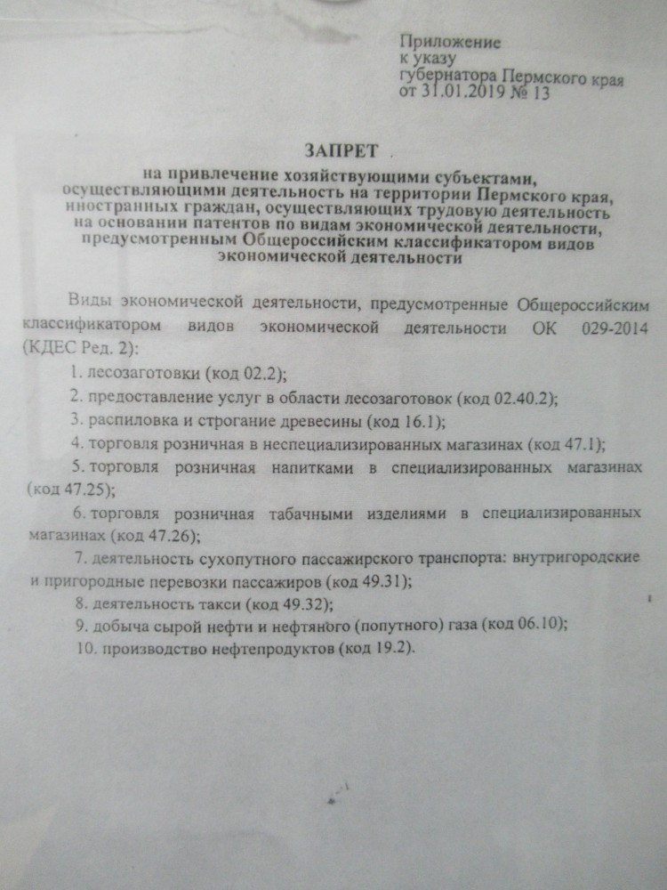 А вы знали, что согласно Указу губернатора иностранные граждане не могут работать в сфере лесозаготовок, торговле, такси… Соблюдается ли этот указ?!