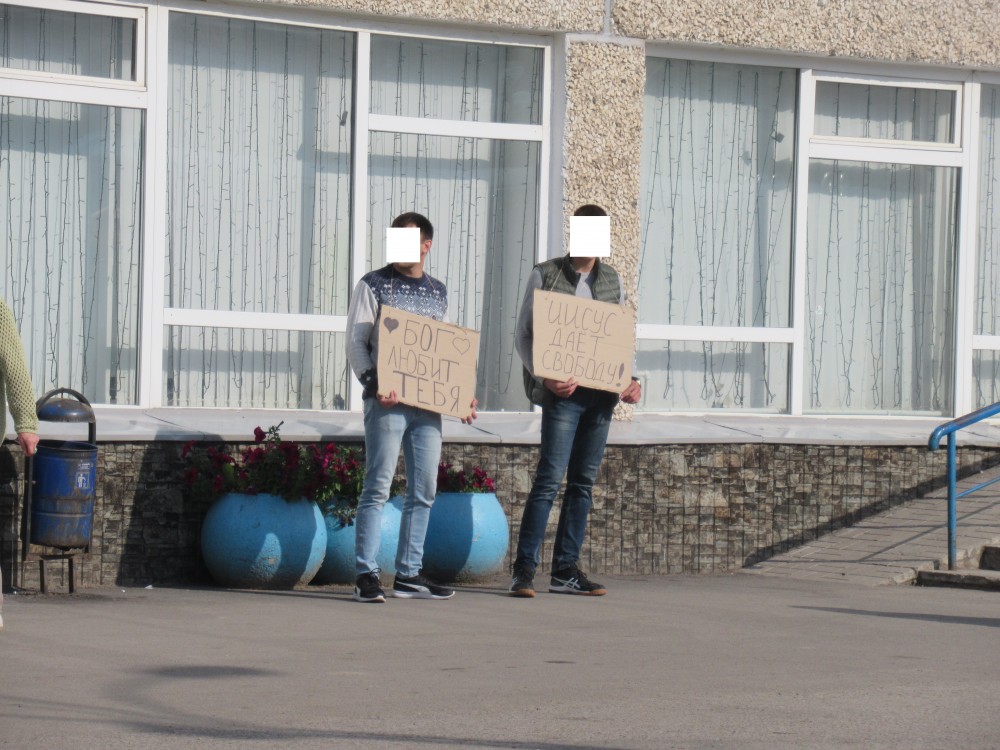 Не хочу этим постом оскорбить чьи-то чувства… Просто описываю происходящее. Наблюдала в субботу такую картинку: двое молодых людей (их лица замажу на всякий случай) больше получаса стояли около ТЦ «Меркурий» с такими табличками.