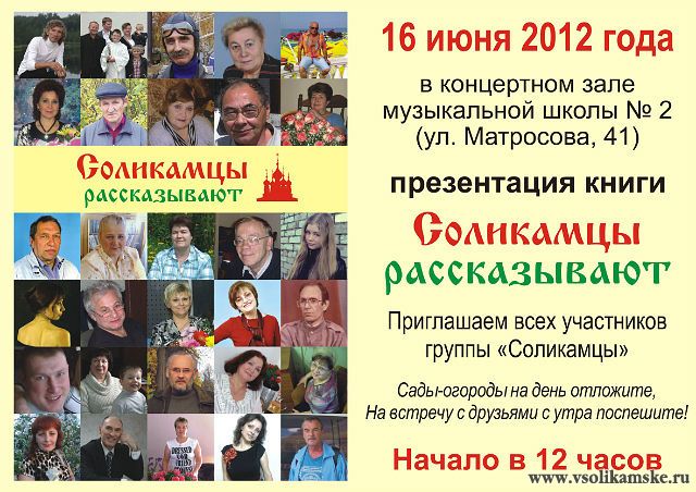 16 июня в 12.00 в музыкальной школе № 2 (Боровск) состоится Презентация книги «Соликамцы рассказывают».