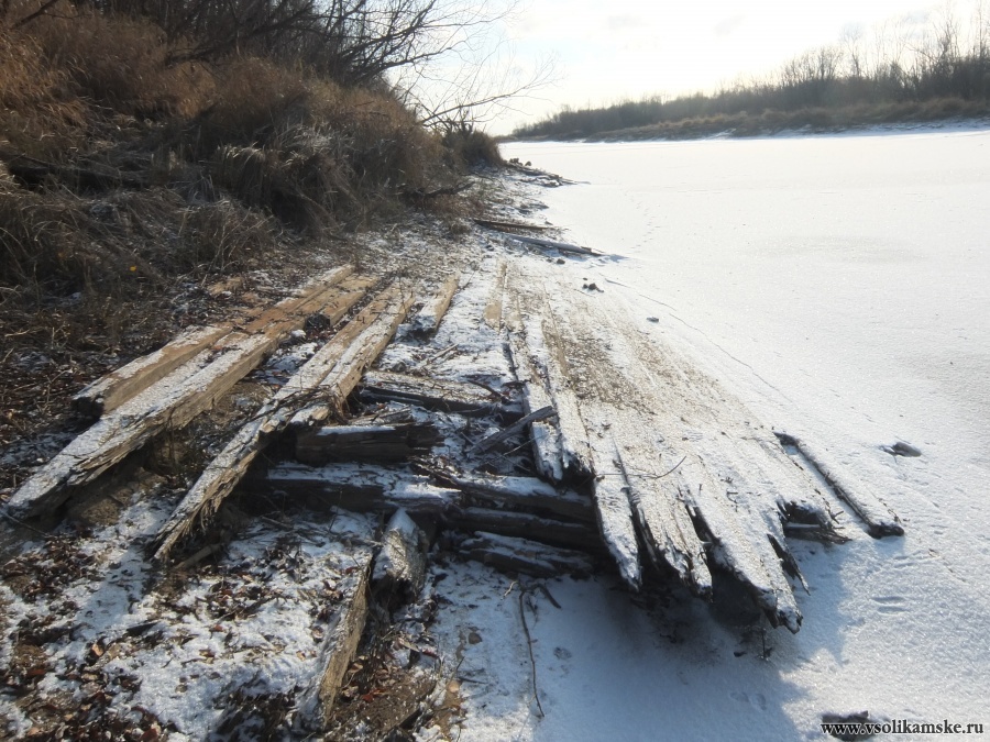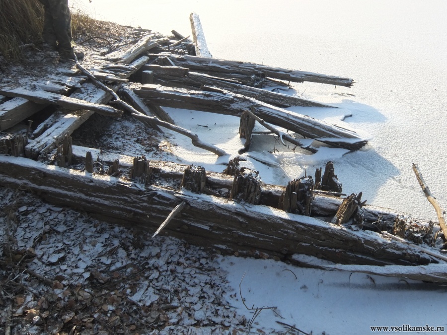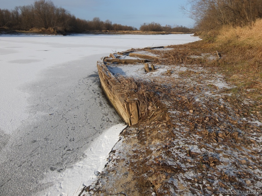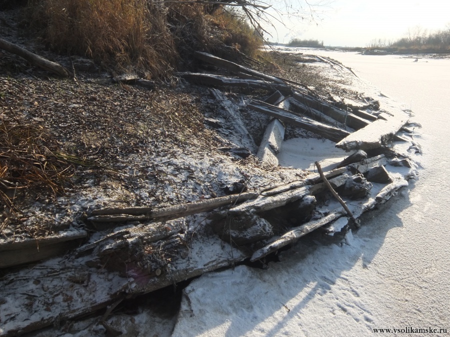 Скажете, нет такого в Соликамске? Есть, и всего в нескольких километрах от Боровска. В 80-е годы, во время летних каникул, часто на велосипеде выбирался в тот район Боровицы на рыбалку, и вот однажды, рыбача в одной из проток, обратил внимание на брусья и доски, тут и там выступающие из земли. Забрасывая удочку в один из омутков, обратил внимание, что он имеет странную прямоугольную форму. Отойдя в сторону, я понял, что это не омут, а люк в трюм какого-то большого деревянного судна. А деревья на том месте, которое я считал берегом, проросли на его палубе. Пройдя по берегу, я насчитал 4-5 остовов таких судов, когда-то причаленных к берегу, и со временем ставших прибрежной полосой.