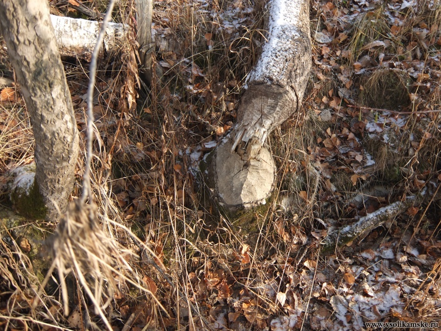 Либо бобры, или ондатры, но судя по наличию на берегах вот таких загрызенных деревьев, все же первое.