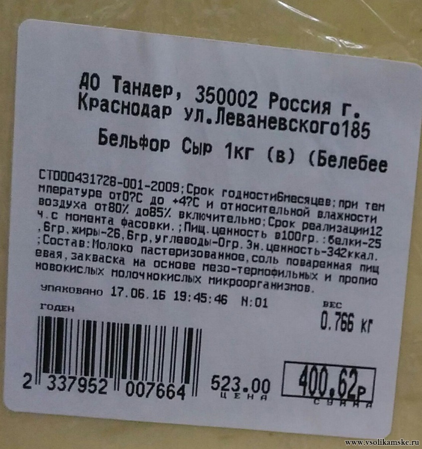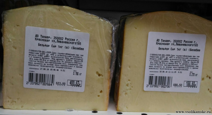 А вчера в "Магните" был сыр большой, 766 грамм, но по 500...