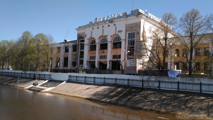 то речной вокзал, напротив, тращится на всех пустыми глазницами окон