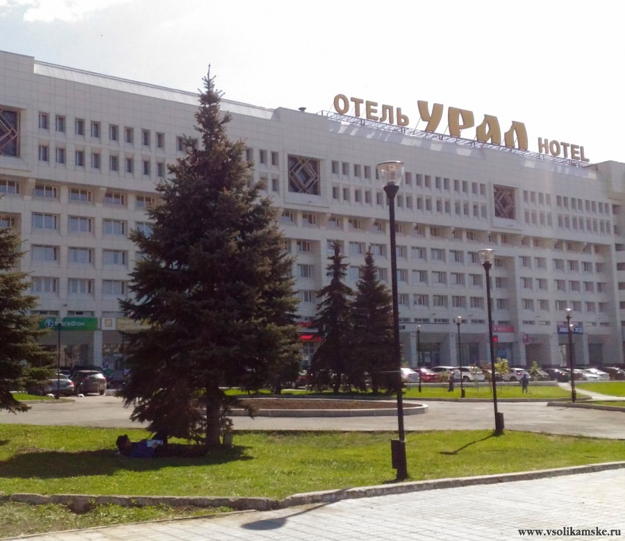 На экспланаде перед гостиницей "Урал" как в цивилозованных странах запада, можно отдохнуть после обеда на травке.