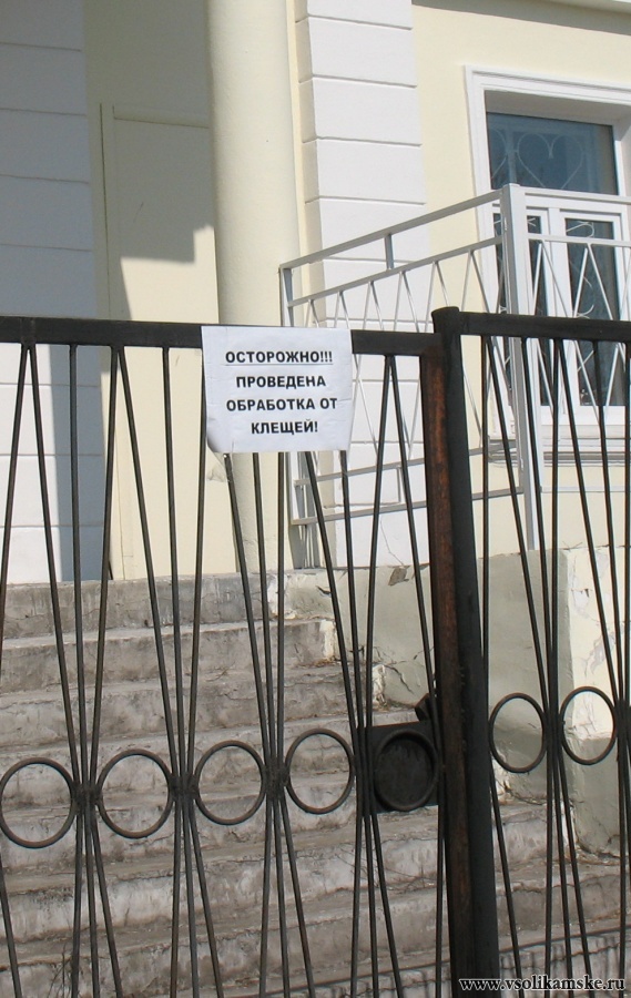 На одном из зданий предупреждение, видимо, для клещей, чтоб не отравились: