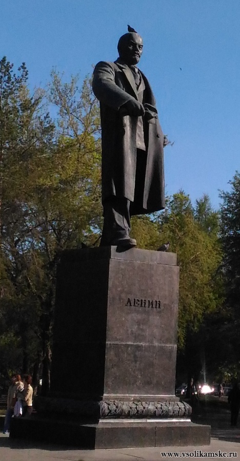 На памятнике Ленину голуби устроили наблюдательный пункт.