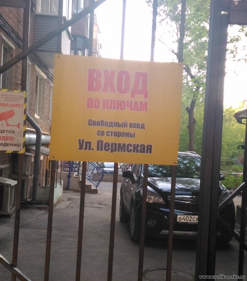 Хошь, входи во двор, открыв замок надвери, а если ключей нет — заходи так!