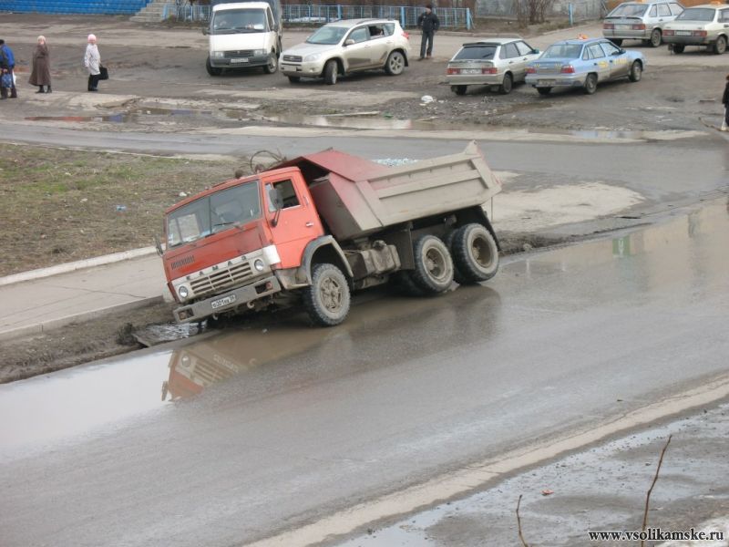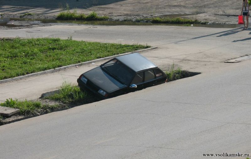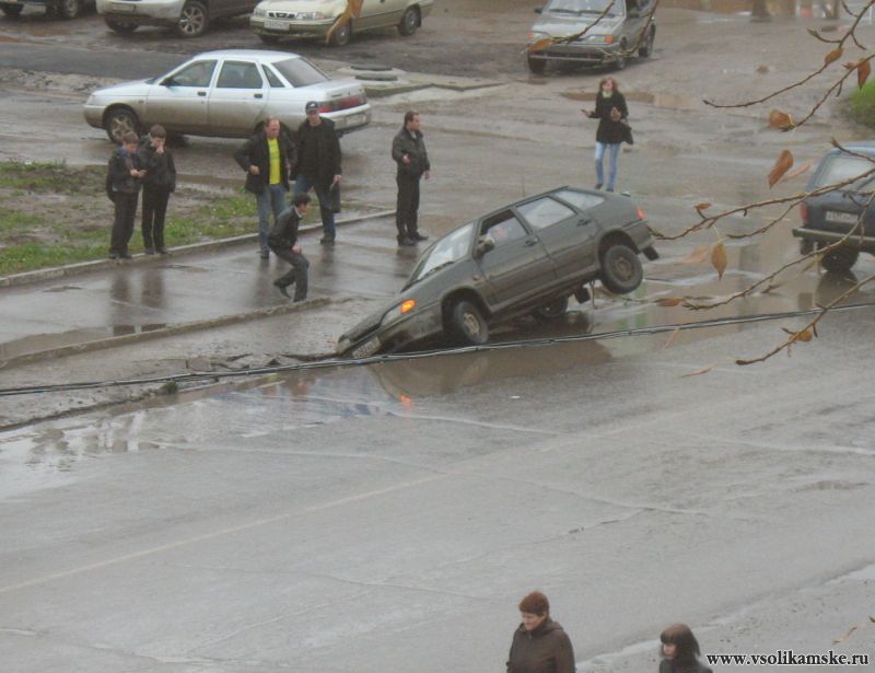 Но, наконец кто-то кому-то(кого-то) настучал (пожаловался, отругал, наказал, распорядился) и приехали дорожники, которые ко всеобщему облегчению устранили это безобразие.