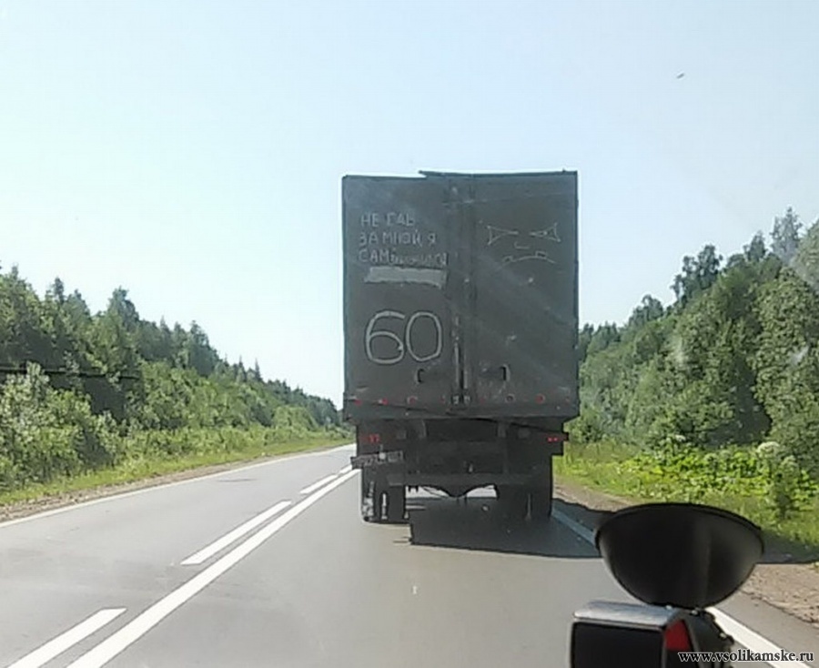 Сфоткал, только отъехал — догнал грузовик — опять весёлая надпись. Я понял, поездка обещает быть...