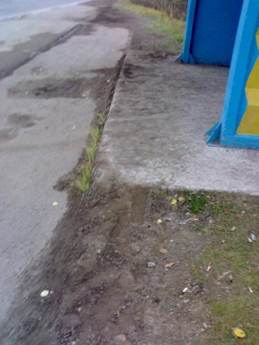 Остановка. Прошел трактор, почистил рядом с остановкой, но вот незадача, валик кидает грязь на обочину, которой, в нашем случае, стала остановка
