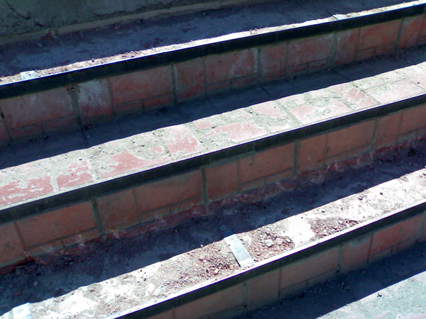 Но и ступеньки, укладываемые строителями в начале зимы. На лестнице ко второму корпусу гостиницы нужно быть аккуратным: покрытия у ступенек нет: только металлическая конструкция.