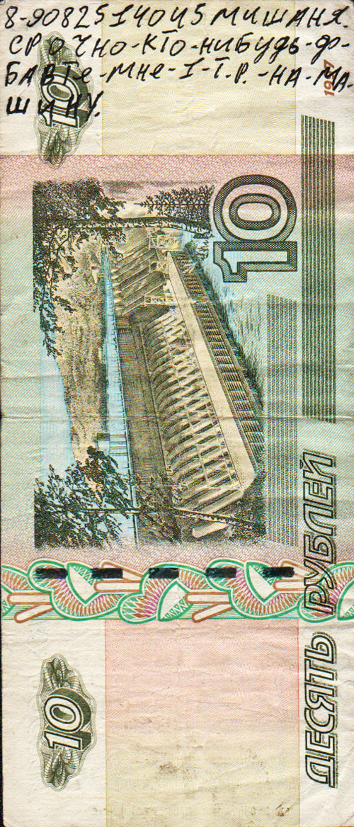 Вот и у нас, в Соликамске, придумали оригинальный способ — на десятирублевой купюре.