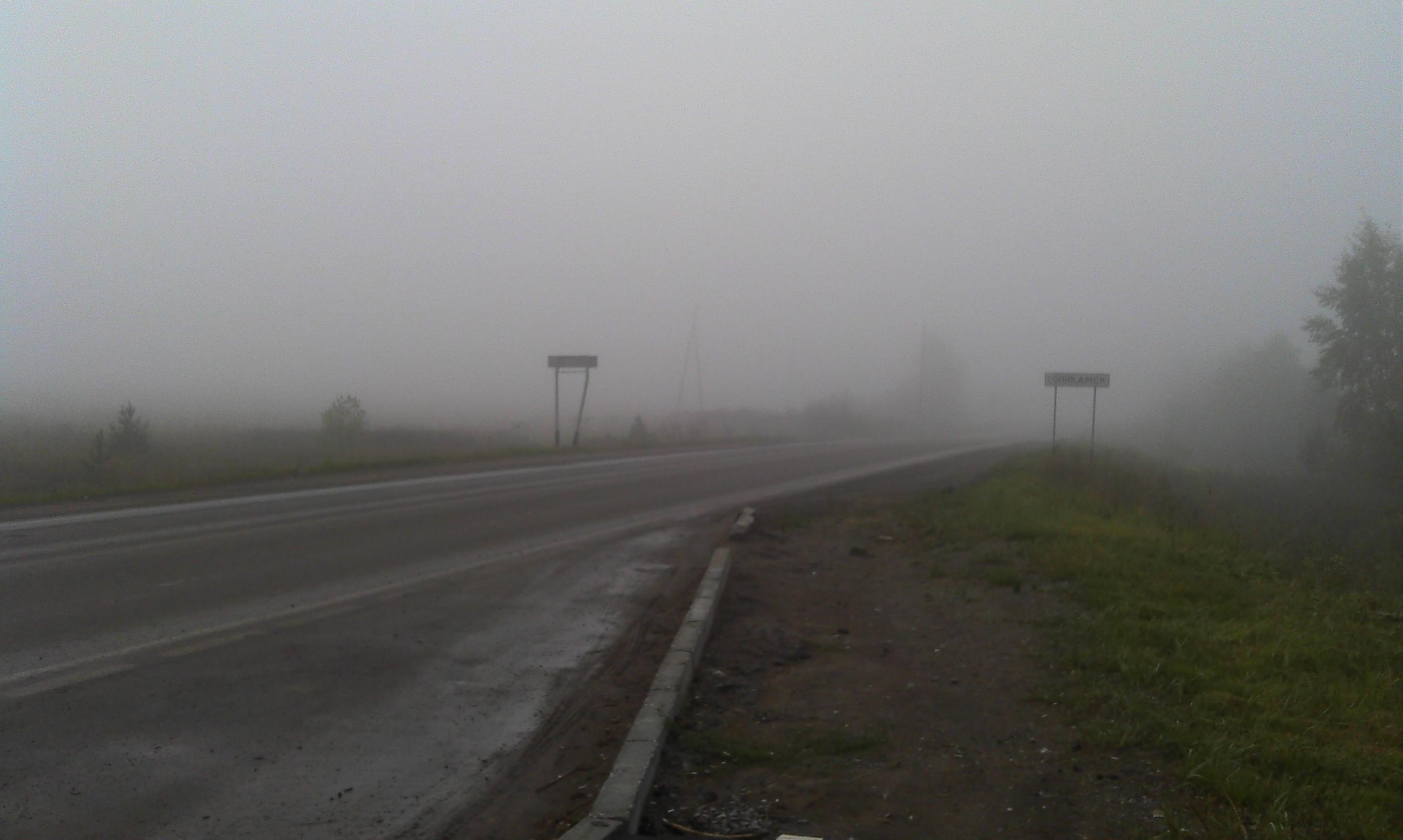 С утра в Соликамске лег туман. Видимость минимальная. Почти нулевая.