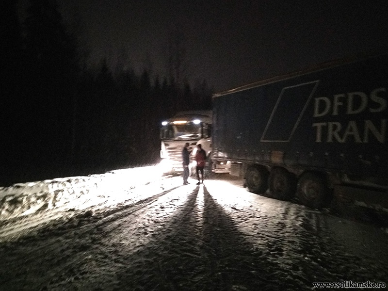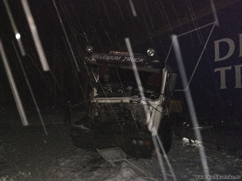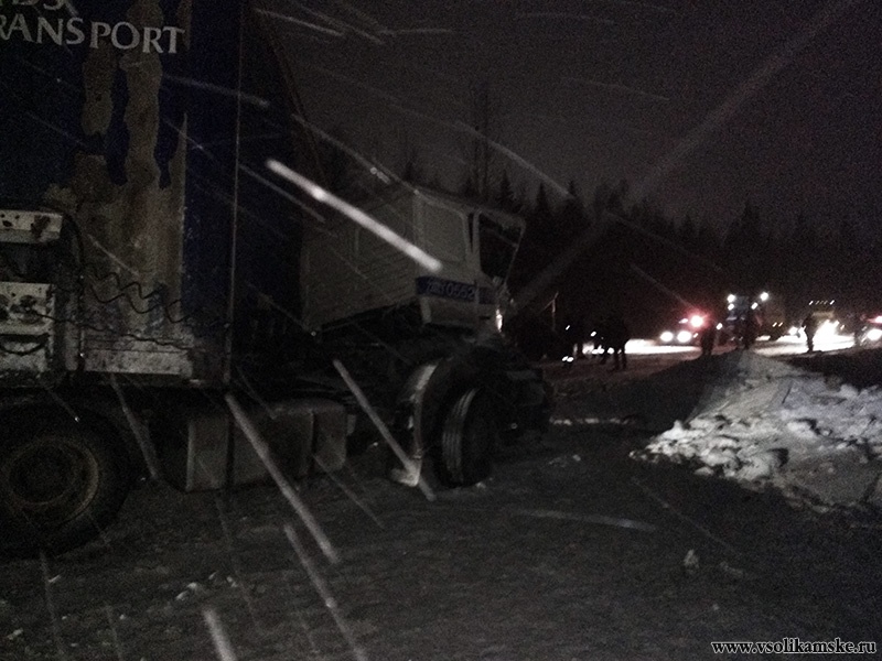 Со слов очевидцев, фура объезжала машину, стоявшую на обочине, ну и получается, выехала немного на встречку. Сегодня метель, на дороге снег, фуру понесло на встречку. На встречке другая фура, уходя от столкновения, ушла в бровку.