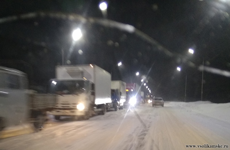 Километровая пробка до аварии со стороны Березников.