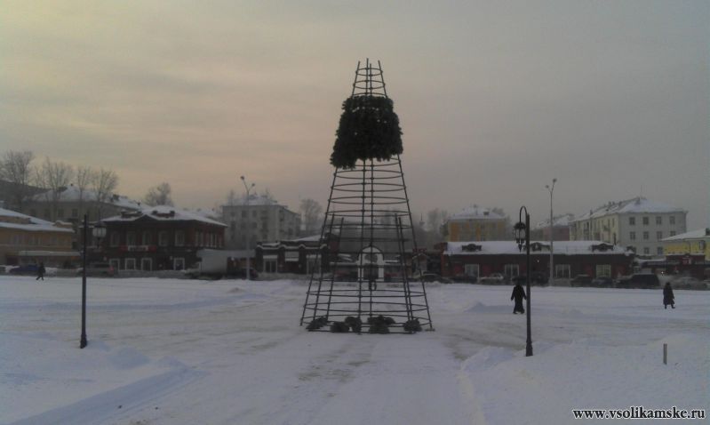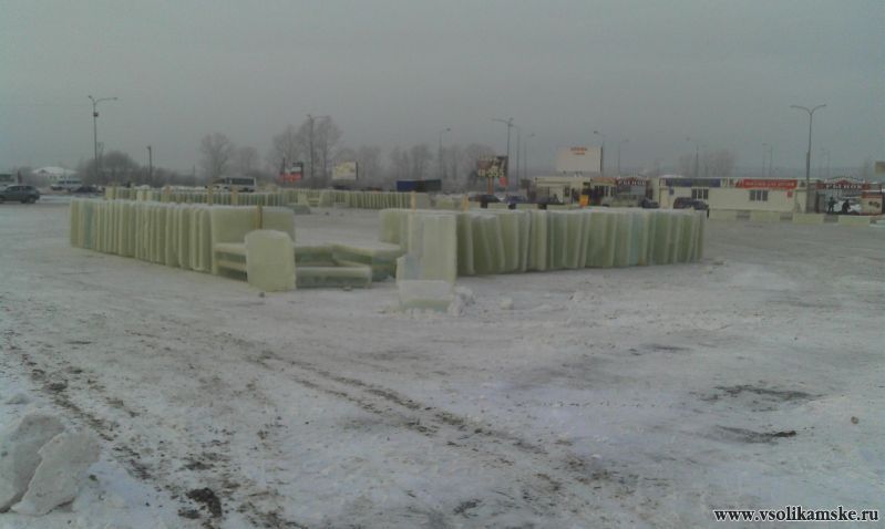 Вчера проезжая мимо центра, увидел каркас будущей елки и груды ледовых блоков. Сегодня прогулялся в центр города, поглядел.