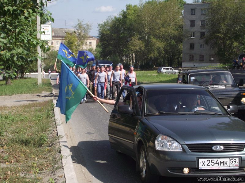 ВДВ-шники уже во всю отмечают. Прошли маршем по Соликамскому Шоссе.