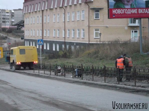 Не хотел доставать фотоаппарат, но столько ремонтников на улицах Соликамска днем с огнем не сыщешь.