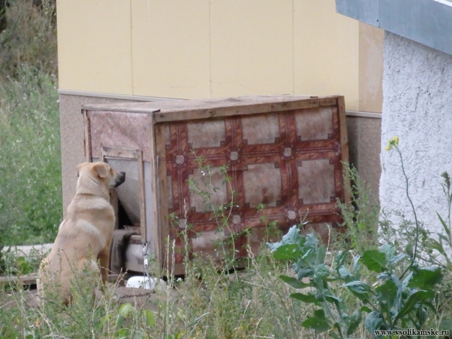 Около них даже у собак будки из новых строительных материалов — линолеума) Собаки правда, стеснительные, от фотографа — отворачиваются)