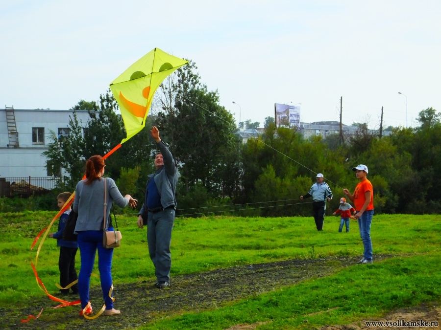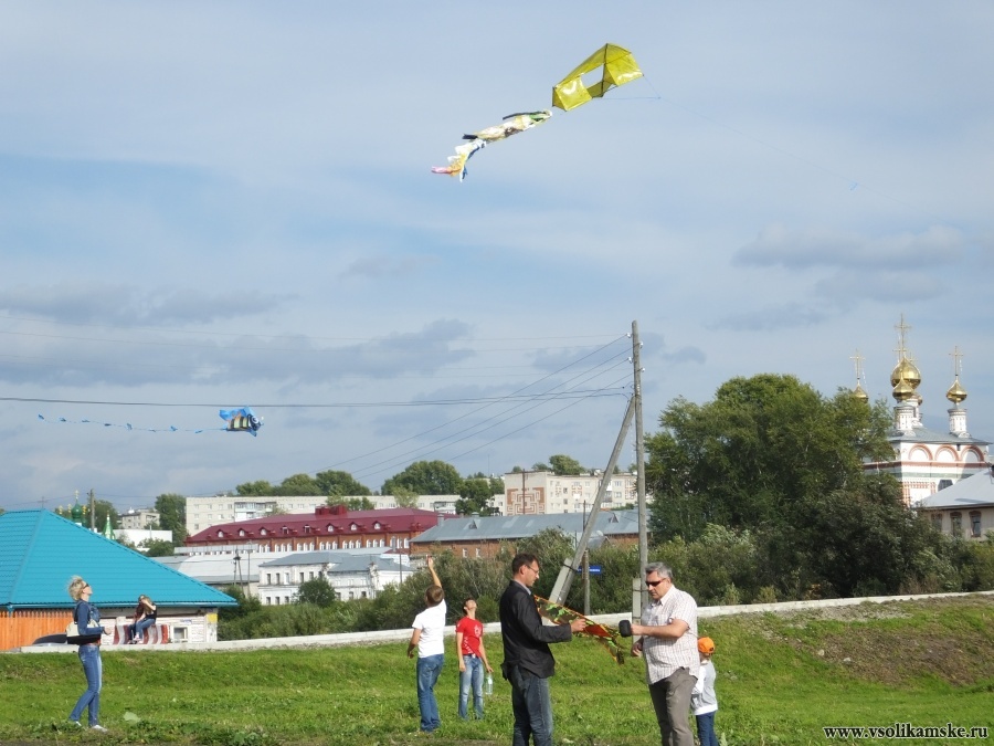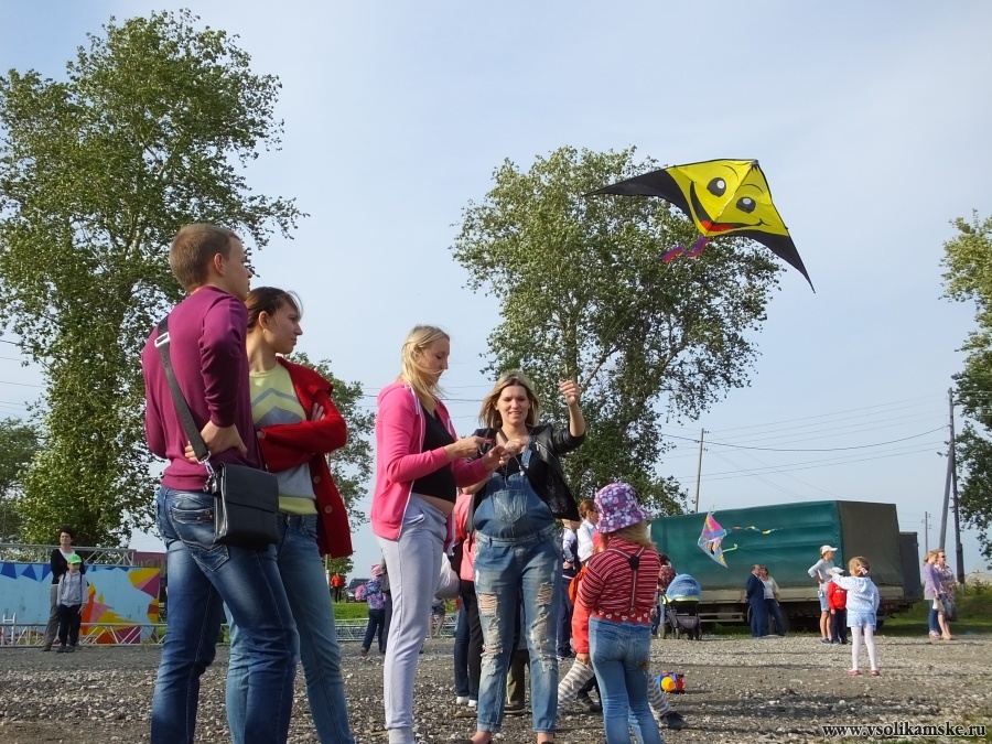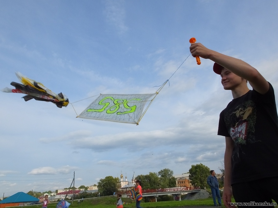 Успели до дождя, так что можно сказать — повезло. Если бы не сильный шквалистый ветер… В прошлом году соревнования проходили вообще без ветра — ни дуновения… Чтобы поднять змеев в воздух нужно было разгоняться и бежаааать. В этом году ветер был такой силы, что у некоторых участников обрывало леску… Пара змеев были безжалостно вырваны ветром и застряли на макушках огроменных тополей… Единственный минус — мы — организаторы так и не можем понять как дисциплинировать участников((( Объявляешь, что такой-то должен стартовать, а человека нет… Из-за этого заминки были. Пара человек так и не появились. А вообще настроение у всех. кто в тот день собрался за Усолкой было отличное! Даже взрослые гоняли со змееями, наверное потому. что это красиво и возвращает в детство!