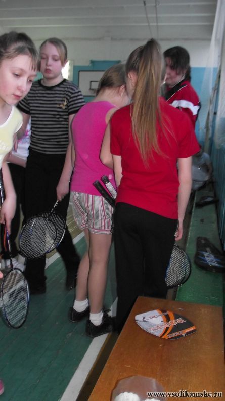 Изображение уменьшено. Затем — раздают ракетки и воланчики. Оборудование закупила школа централизовано.