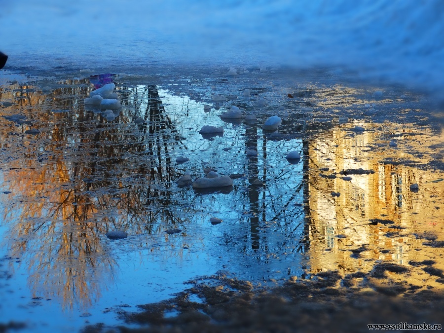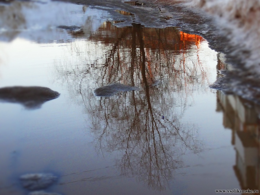 Весна пришла неожиданно)) Соликамск и снег напора плюсовой температуры не выдержал и мы поплыли. Если еще вчера многие жаловались на гололед и "катушку", то сегодня все больше слышны жалобы на грязь и лужи. Они везде! Они необъятны Кажется они могут испортить самое хорошее настроение Особенно вот такие((( и не только пешеходам всё так уныло… хотяяяя, дети радуются А я вместе с ними. Обожаю лужи и отражения города в них. Делюсь)