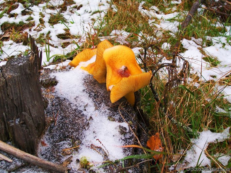 Изображение уменьшено. Щелкните, чтобы увидеть оригинал. В лесу, несмотря на снег полно поганок, а еще есть лисички