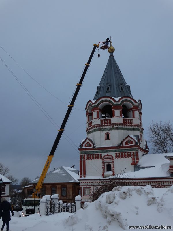 Сегодня 3 февраля Богоявленская церковь обрела крест. Его установили на купол после молебна и освящения. Напомню, что крест с Богоявленской церкви сняли в сентябре, потому что он покосился на восток под углом почти 90 градусов. После восстановления креста загвоздка в установке была еще и в том, что в Соликамске нет кранов со стрелой, достигающей нужной для установки на церковь, длины. Кран приехал из Березников. Думаю, что событие это — установка креста — несомненно, радостное и очень значимое для города. Пусть у Соликамска и его жителей всё будет хорошо. Изображение уменьшено. Щелкните, чтобы увидеть оригинал. Изображение уменьшено. Щелкните, чтобы увидеть оригинал. Изображение уменьшено. Щелкните, чтобы увидеть оригинал. Изображение уменьшено. Щелкните, чтобы увидеть оригинал. Изображение уменьшено. Щелкните, чтобы увидеть оригинал.