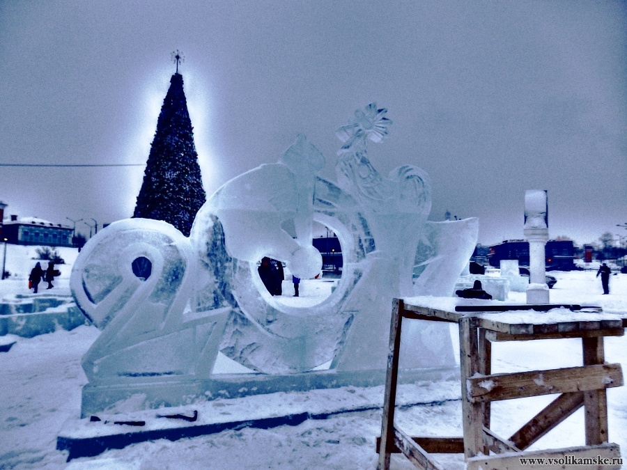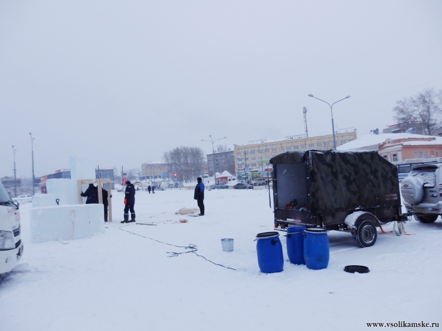 В центре города продолжается строительство ледового городка. Как и в прошлые годы работает Строительная компания "Ермак".
