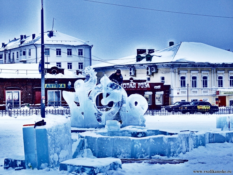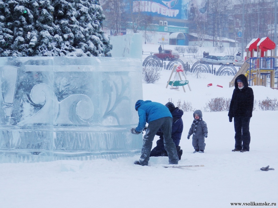 А еще будут Дед Мороз и Снегурочка, Трон с лабиринтом, горки, елочки… По крайней мере так заявлено в проекте ледового городка. С погодой строителям не очень повезло… холодно. Хотя, как они сами шутят, это по сравнению с Ханты-Мансийском, откуда они только что приехали, еще — тепло!