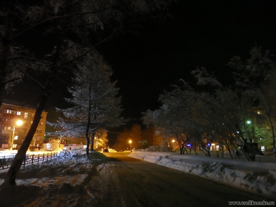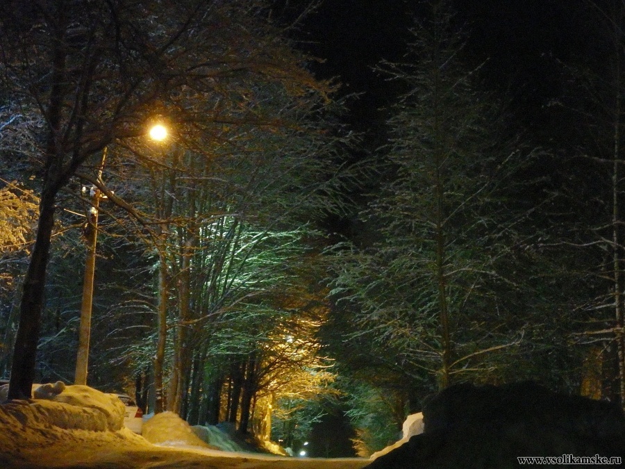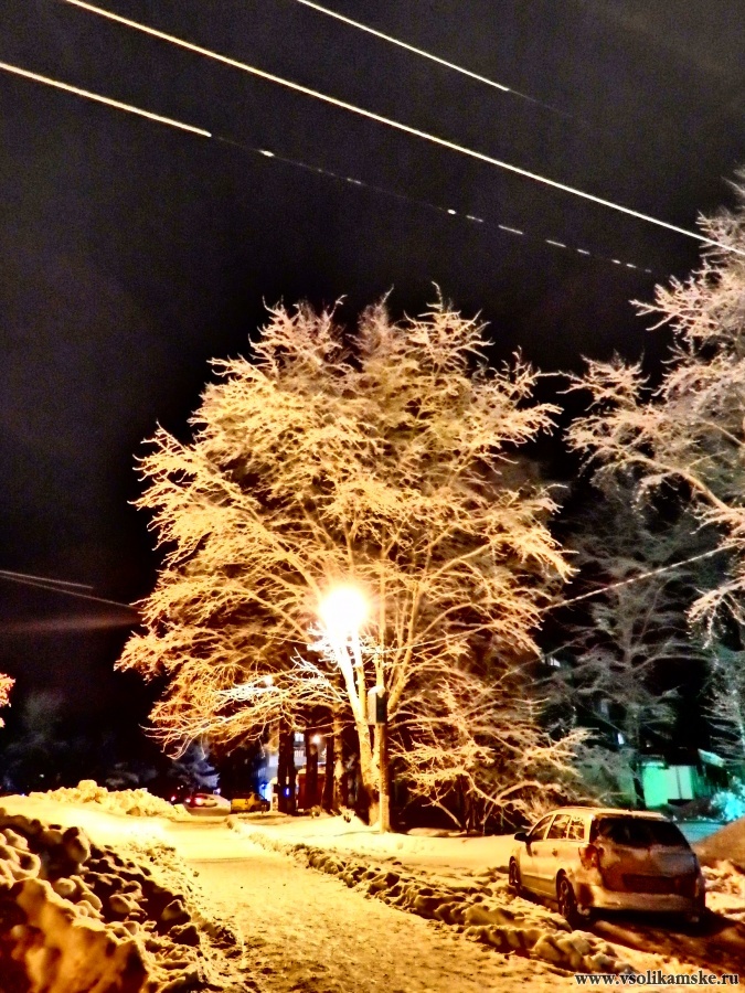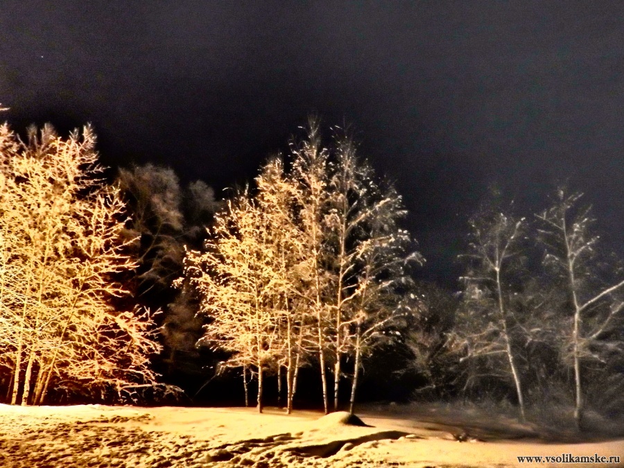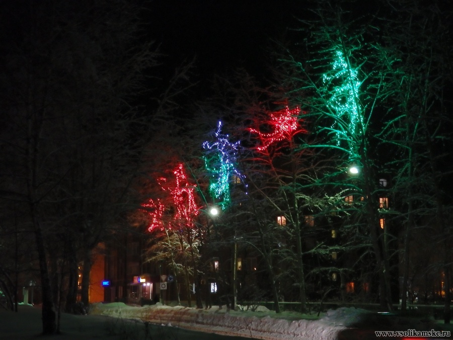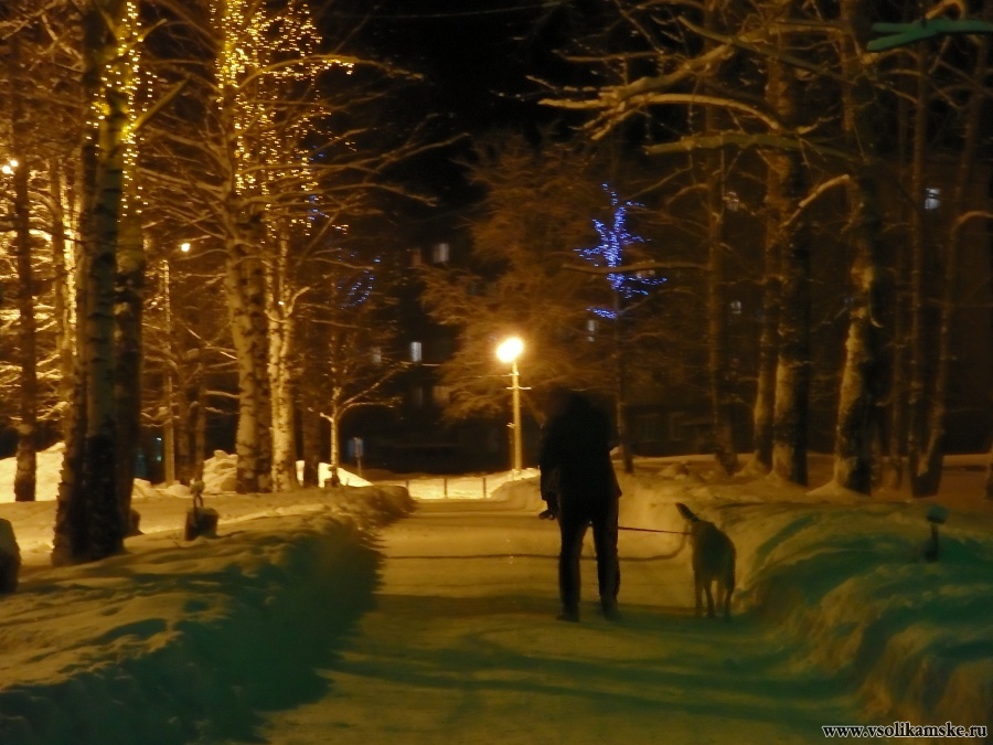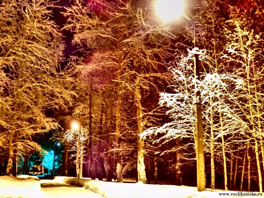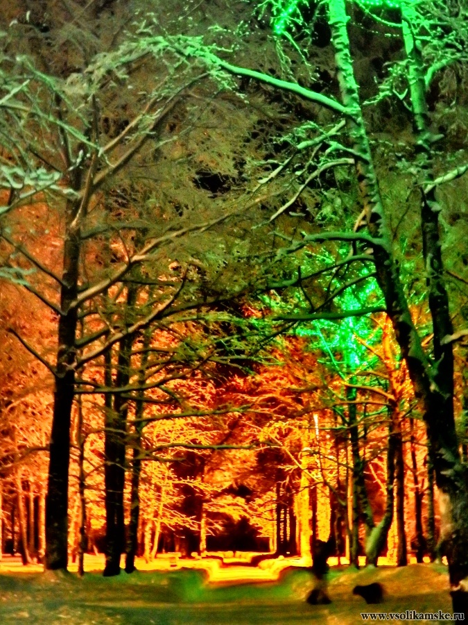 Особенно красиво, когда из-за перепадов температур деревья стоят в снежных шубках. Выходишь ночью собаку выгулять и только мороз способен загнать вас обратно домой Обычно наш прогулочный маршрут проходит по Северной, Матросова, Молодежной. Заходим в парк))) Везде красотища) Хоть картины пиши) Радует подсветка, ее много где можно теперь увидеть. Вот эту на площади Ладкина я называю — пляшущие человечки — с разных ракурсов очень похоже на разные фигурки)